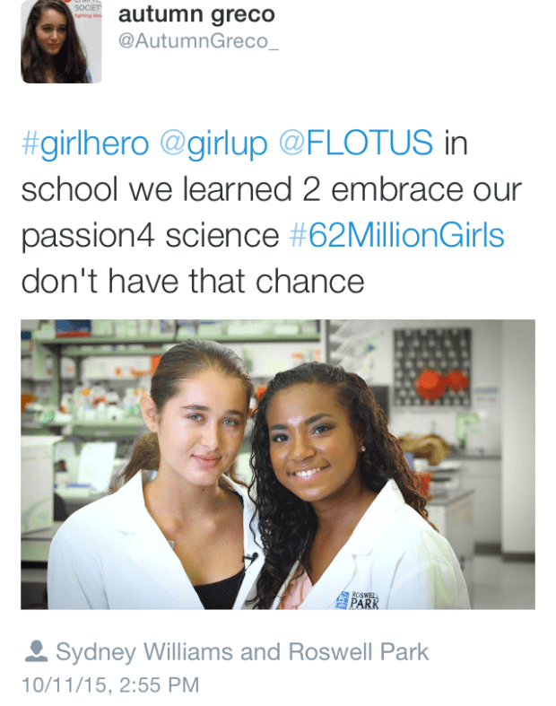 I would definitely tell her to speak up, be herself, and don’t be afraid of what other people think. I was painfully shy as a child and only started to find myself and grow into my personality later in high school. At that point, everyone with who I had grown up knew me as the “shy, smart” girl and it was hard to break out of that shell and become the more outgoing person that I am today. I wish I had allowed myself to grow and share my true self with others at a younger age, but I am glad I had supportive friends in college who completely allowed me to grow into the person I am today! I want all girls, no matter their age, to dream big and follow those dreams; make them a reality. At the same time, don’t let other people peg you as something you are not and always allow yourself to take the path that may seem “off course.” Be open to opportunity and see where life takes you! As long as you make sure to always be true to yourself, everything else will fall into place.